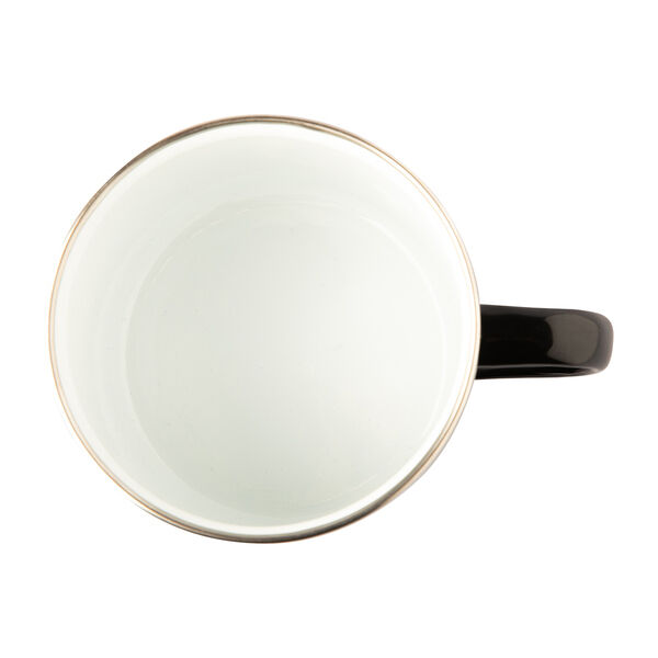 Mok van geëmailleerd koolstofstaal met een handvat in vintage stijl en een rand van roestvrij staal.