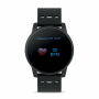 5.0 draadloos smartwatch gezondheidshorloge van ABS met siliconen band. LCD-display met aanraakscherm. Oplaadbare Li-Pol 90 mAh batterij. IPX7 waterdicht. Vereist een gratis app (HryFine beschikbaar in zowel iOS als Android).