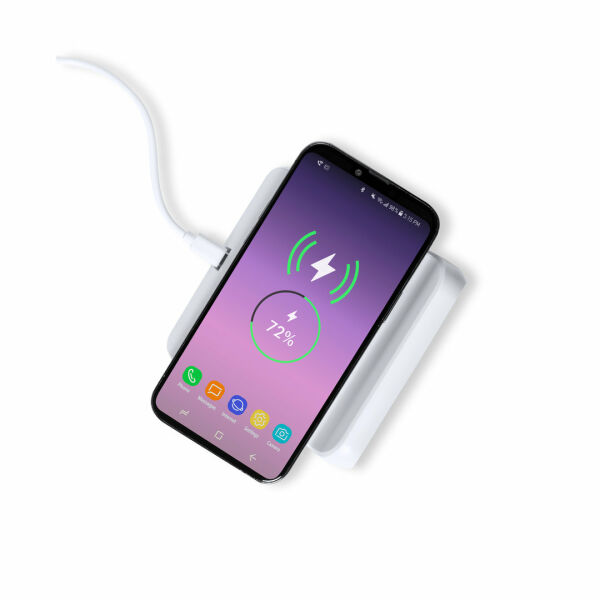 Multifunctionele klok met verlicht display en geïntegreerde 10W draadloze oplader. In elegant wit design, met tijd- en alarmfuncties. 1m Type C oplaadkabel inbegrepen, en compatibel met apparaten uitgerust met Qi draadloze oplaadtechnologie. Gepresenteerd in een individuele kraft design doos, met handleiding in het Engels en Spaans.Vervaardigd volgens RoHS-normen en in overeenstemming met de volgende veiligheidseisen:Beveiligingssysteem tegen oververhitting.Overlaadbeveiliging.Blokkadesysteem om kortsluiting te voorkomen.