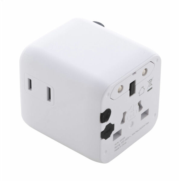 Ultracompacte, universele wereldwijde reisadapter van gerecycled pc-plastic, met ingebouwde pluggen voor de VS, Europa, het VK en Australië.