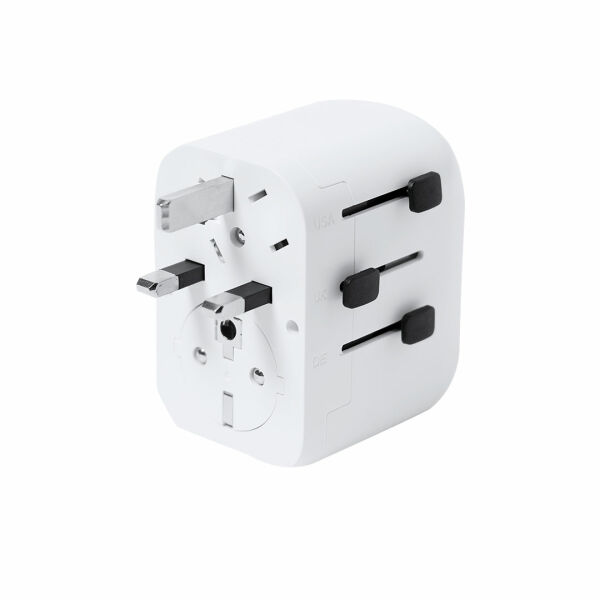 Volledige stekkeradapter, met een compact en draagbaar ontwerp. Met USB-uitgangen en twee Type C, speciaal bedoeld voor reizen met multi-regio adapters voor de VS, Europa, Azië, het Verenigd Koninkrijk en Australië. LED-indicator voor aan.