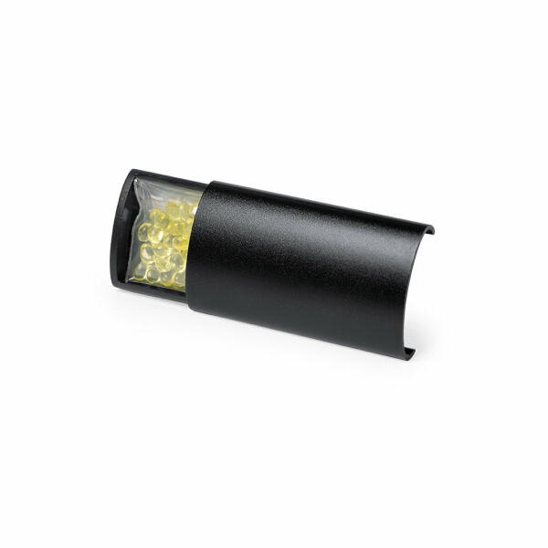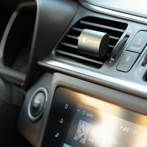 Dashboard-luchtverfrisser in een elegant ontwerp. Met schuiffront in gegranuleerd aluminium en een resistente achterkanthouder voor grill. Parfumballen met citroengeur en verkrijgbaar in zilveren en zwarte kleurafwerkingen.