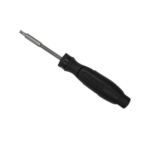 Gereedschapsset in een zwarte hoes met ritssluiting. De set bestaat uit: hamer, waterpas, stanleymes, rolmaat van 3,5 m met vergrendeling (schaalverdeling in centimeters en inches) en een punttang, een tang met schuifscharnier. De set bevat ook een handgreep met een verlengstuk voor 6 bits: 2 kruiskopschroevendraaiers, 2 platte schroevendraaiers, 2 inbussleutels. De handgreep is schuin te verstellen, waardoor je ook op moeilijk bereikbare plaatsen kunt werken.