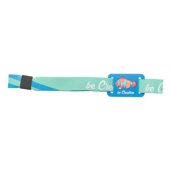 Op maat gemaakte, polyester festivalarmband met kunststof veiligheidsslot. Met sublimatie opdruk aan beide zijden. MOQ: 100 stks.