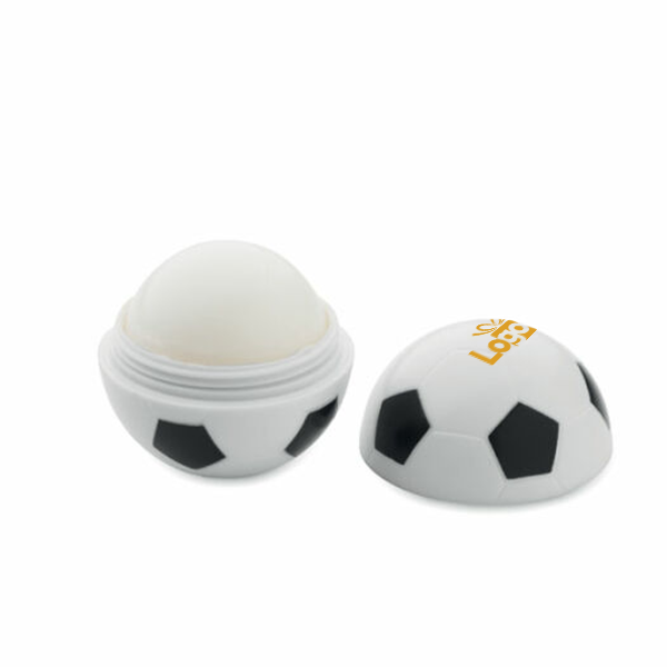 Lippenbalsem met doosje van ABS in de vorm van een voetbal. SPF10. Smaak: Vanille.