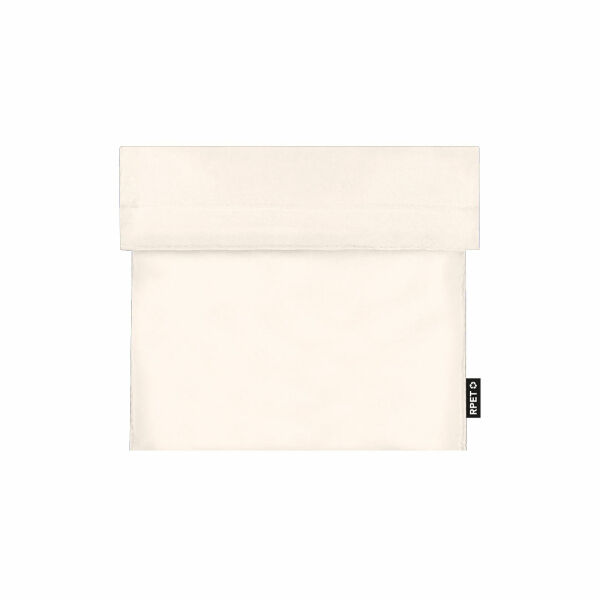 Thermische snackshouder gemaakt van RPET polyester 210T. Iso thermisch binnenin in PEVA, met klittenbandsluiting en een buitenlabel met het RPET-label.Het RPET-materiaal is gemaakt van gerecycled plastic, ter bevordering van de herbruikbaarheid van plasticafval en om de duurzaamheid van de planeet te helpen.
